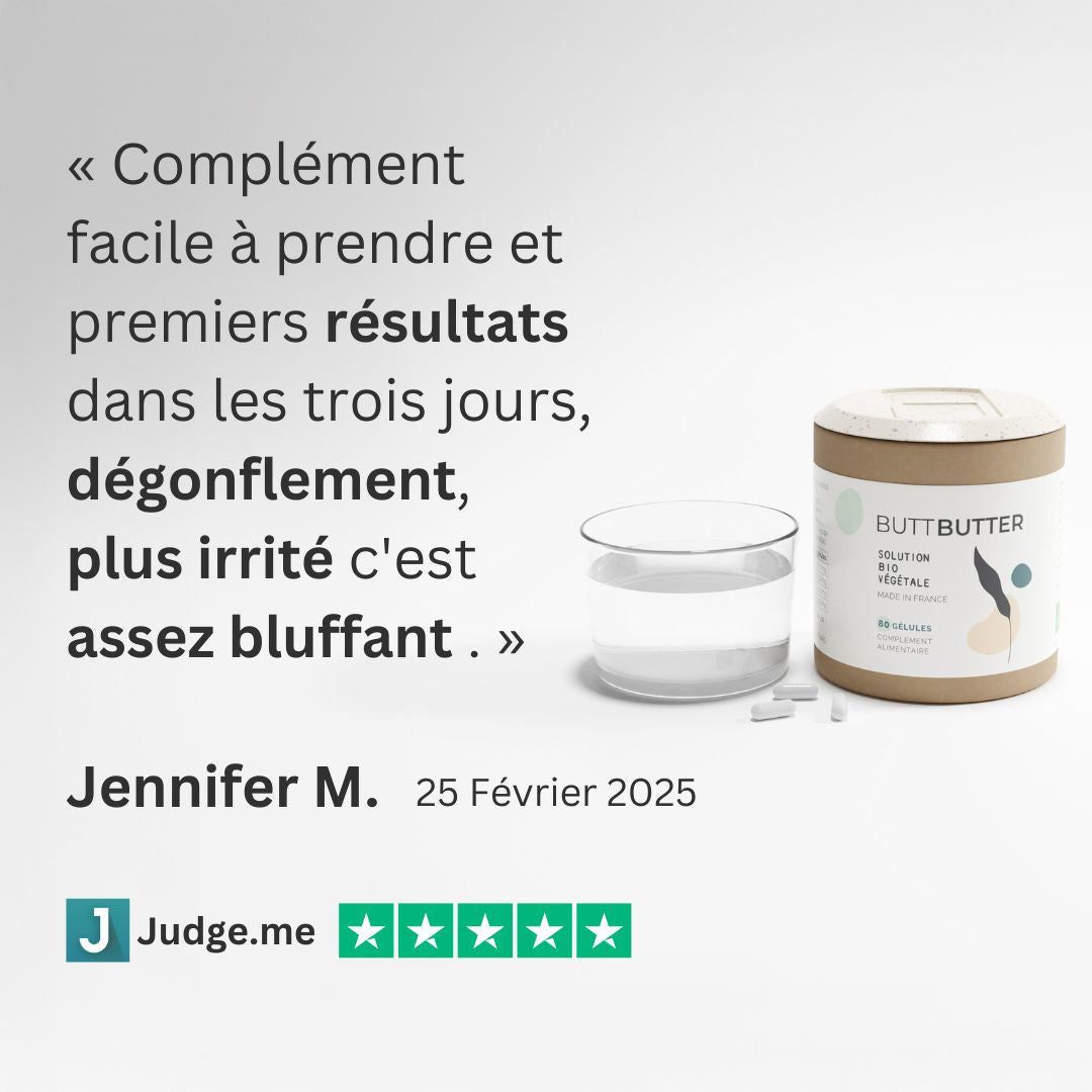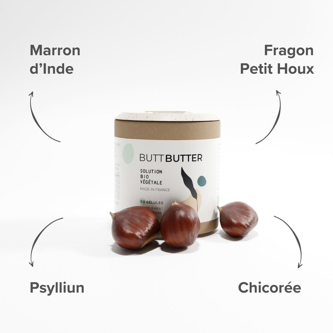 The Butt Butter dietary supplement is not compatible with pregnancy and breastfeeding, due to the presence of organic Horse Chestnut and organic Fragon Petit Houx. We recommend that pregnant or breast-feeding women seek medical advice before taking Butt Butter.