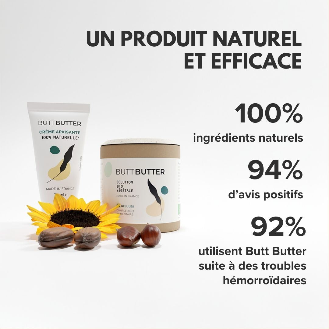 Butt Butter cream is 100% natural, Yuka Excellent and compatible with pregnancy and breastfeeding.
