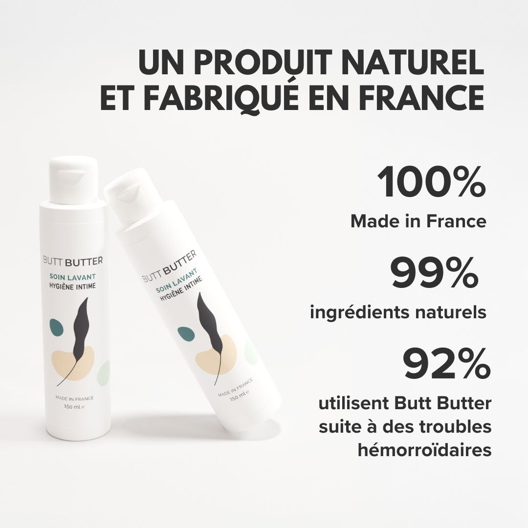 Butt Butter intimate hygiene cleanser is 99% natural, Yuka Excellent and compatible with pregnancy and breastfeeding.